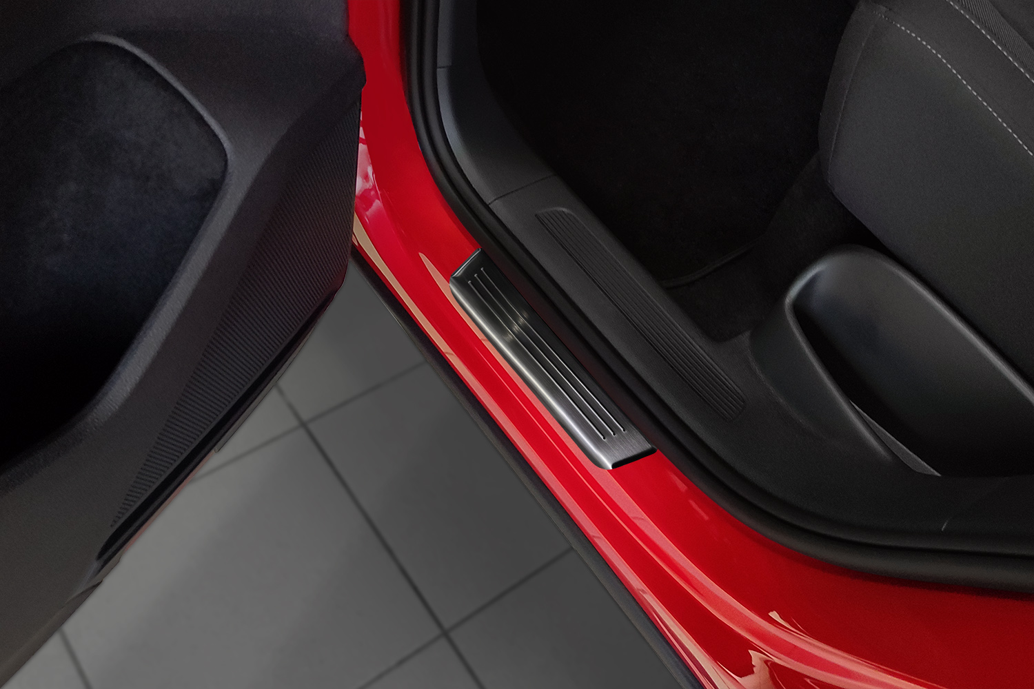 Diese Edelstahl Einstiegsleisten von CarParts-Expert schützen die Schweller vom Ihrem Volkswagen Tiguan II Allspace wirkungsvoll vor Dellen und Kratzern beim Ein- und Aussteigen. Darüber hinaus verleihen sie Ihrem Auto eine besonders luxuriöse Note. Schöne Details heben diese Einstiegsleisten deutlich von billigen Massenprodukten ab. Die Montage ist sehr einfach, weil das Produkt mit festhaftendem doppelseitigem Klebeband ausgestattet ist.