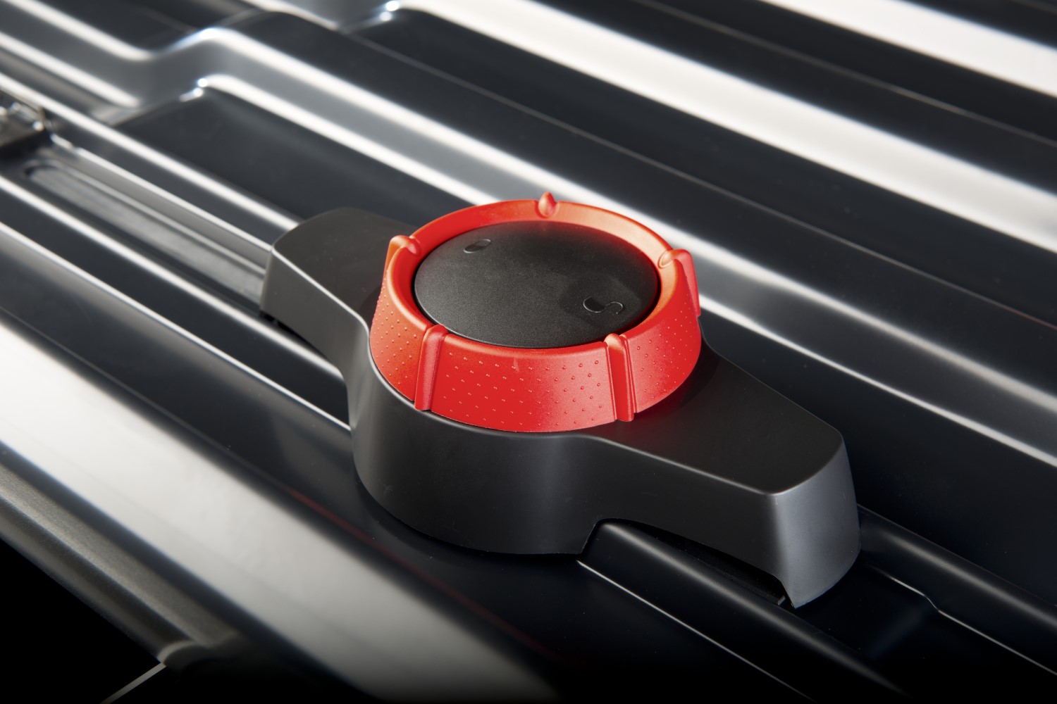 The Zenith roof box is attached to the roof rack with the patented Premium Fit system. Mounting and removing the roof box is done quickly and easily with a rotating knob, which deploys special clamps around the crossbars. Each Premium Fit clamp centers itself on the crossbars and can therefore adapt itself to any crossbar with a maximum width of 95 mm.
